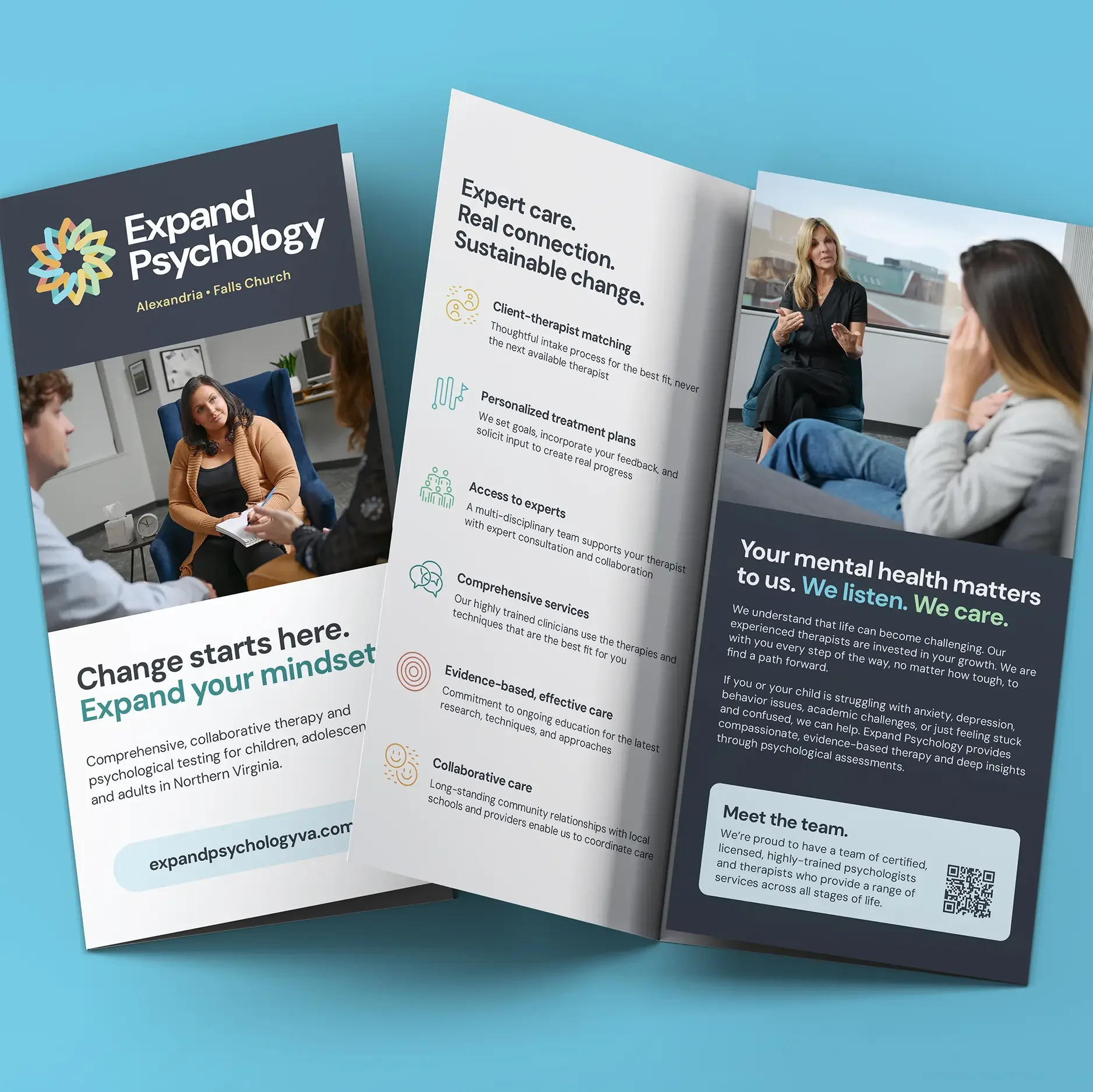 The new identity positions Expand Psychology as a trusted, approachable, and forward-thinking practice. The logo now serves as the cornerstone of their rebrand, anchoring collateral, digital assets, and the website redesign.