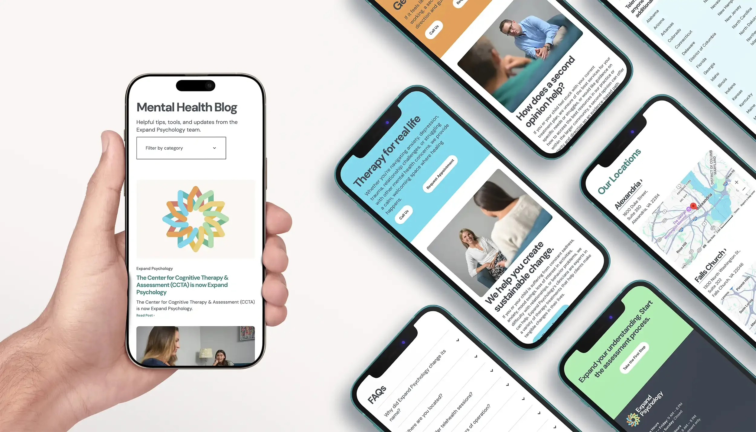 Expand Psychology, formerly known as The Center for Cognitive Therapy and Assessment (CCTA), is a mental health psychology group practice located in Northern Virginia. After two decades of growth, the founder sought to rebrand the business to reflect their expanded services.