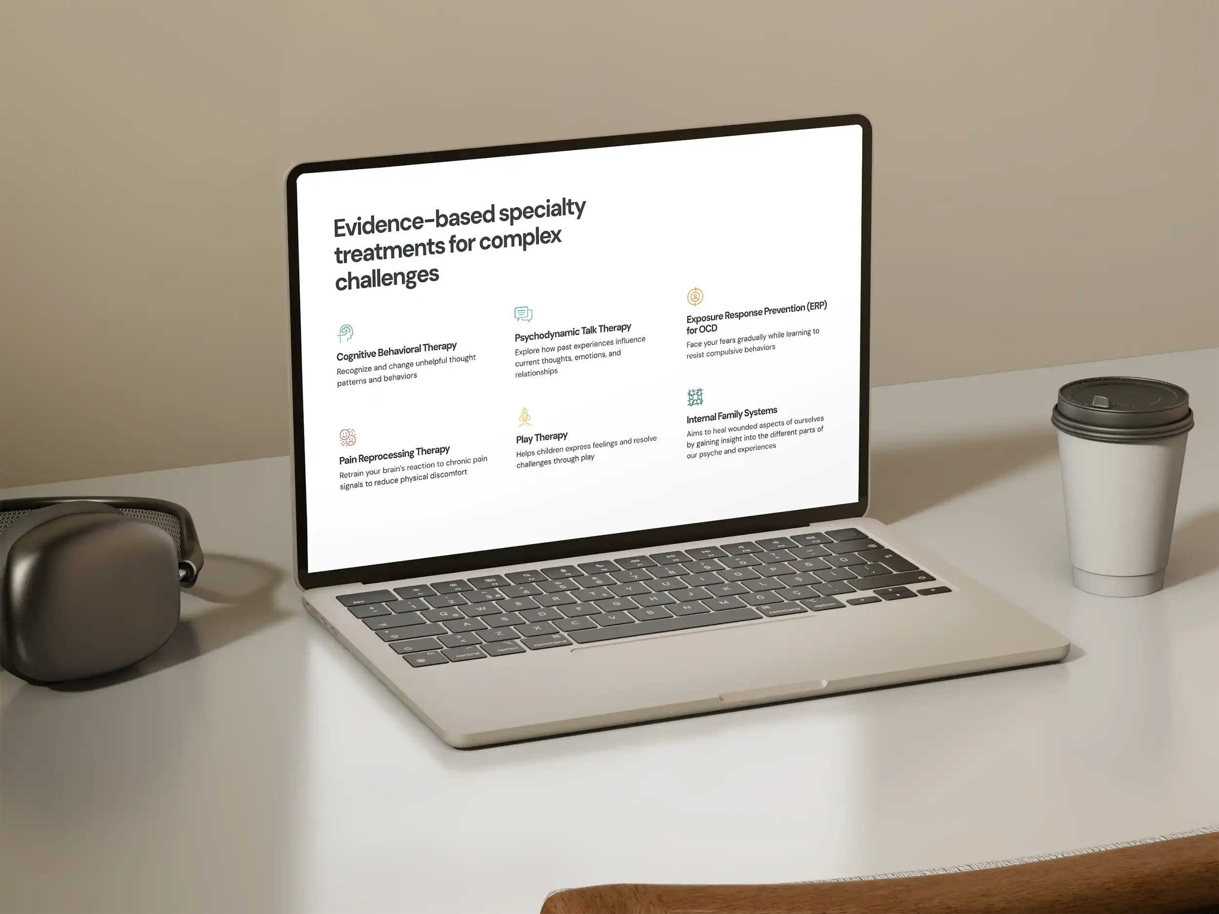 The website needed to communicate the shift from CBT-only and mostly children, to a full complement of therapy services for adolescents, adults, and parents. The redesign aimed to educate and build trust. It also had to differentiate its practice by emphasizing clinician expertise, client-therapist fit, and collaborative care.